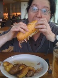 Well, lately we made a wonderful albeit purely accidental discovery. There's still a place you can go to get great food for two for under $25 - non-alcohholic drinks INCLUDED! Most recently, Darlene had a prime rib dinner with roasted vegetables and roasted potatoes while I had a veggie stir fry with beef - big giant pieces of beef, on rice. Darlene actually said it was one of the best prime rib meals she has ever had. That's a huge compliment coming from her. They serve breakfast too.